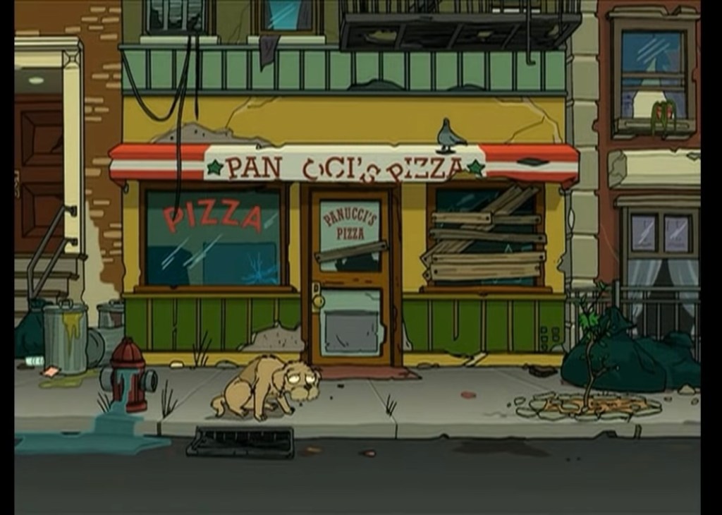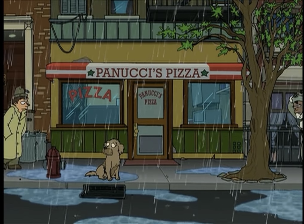 At the end of the episode, the last thing you see is the last interaction between Fry and the dog in the form of flashback. Fry tells the dog to wait for him outside of the pizza shop. The dog lays on the sidewalk and waits for him, in the rain, sun, sleet, and snow for 12 years. The song “I will wait for you,” by Connie Francis plays during these scenes. The song plays “If it takes forever, I will wait for you. For a thousand summers, I will wait for you…” The dog remains there on the sidewalk waiting for 12 years, until the dog himself passes.