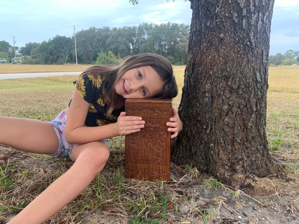 I took it outside to put it by our tree where Jesse built the kids a treehouse and began to cry immediately. His cat, Nymeria, who is usually patient, ran out the door with me to the tree. She probably feels neglected because she hasn’t gone outside much anymore. O ended up coming outside too and wanted to take a picture with Dad. Why is our reality that of you being a box. I cannot fathom it. I tried to keep myself busy again today but my brain is just so scattered.
