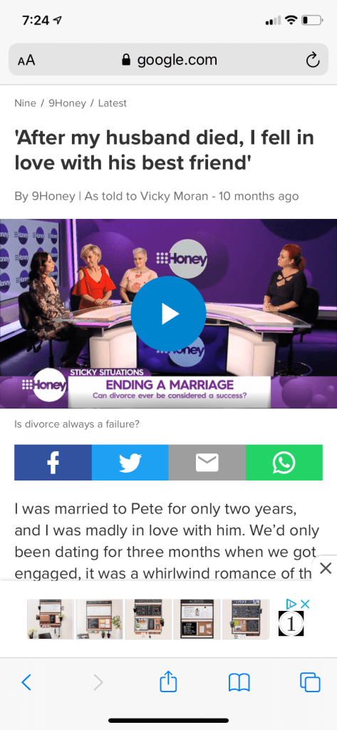 He said to me he thinks he will die around 50, so I will be widowed twice. Then he assured me “but this time you can prepare.”